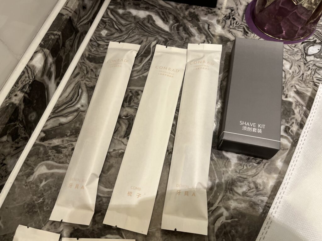 アメニティも歯ブラシ、シェービングキット、綿棒と最低限ですが用意があります。