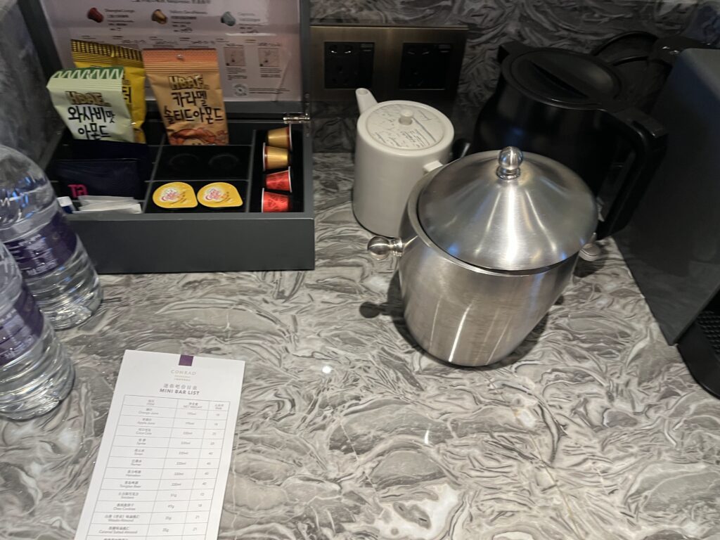 もともとルメリディアンブランドだったものを新しくリニューアルしているはずなのですが新しさはないです。高層階なので眺望は良いですがインテリアは1世代前といった印象です。正直コンラッドならもう少し頑張ってほしいですね。