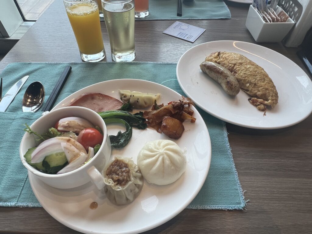 よくあるハムやチーズ、ソーセージなどのアメリカンスタイルに加え、中国らしいヤムチャや、麺類もありました。