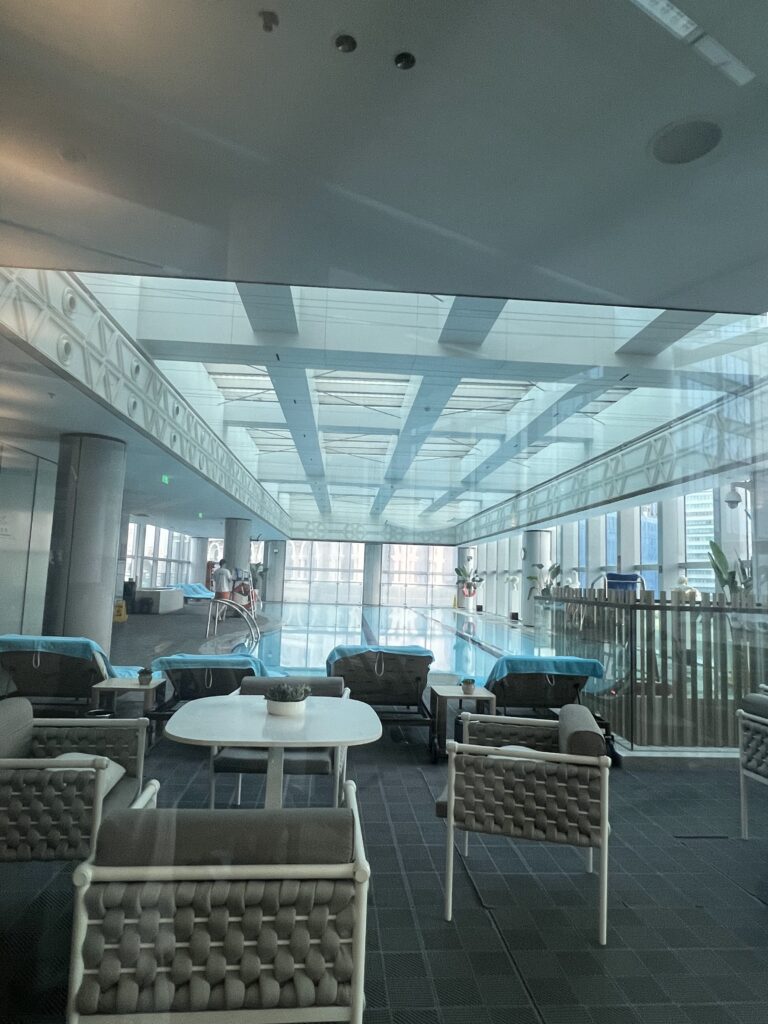 ちなみにこのラウンジ44階なだけあってなかなかの景色です。遠くに上海タワーも見えてますね。