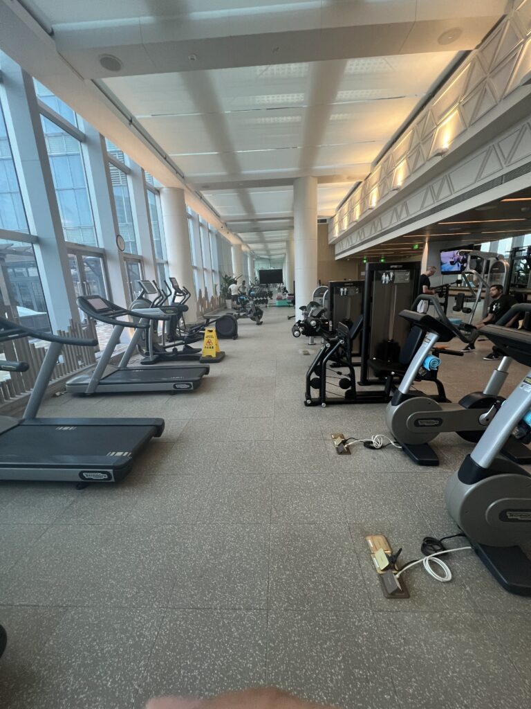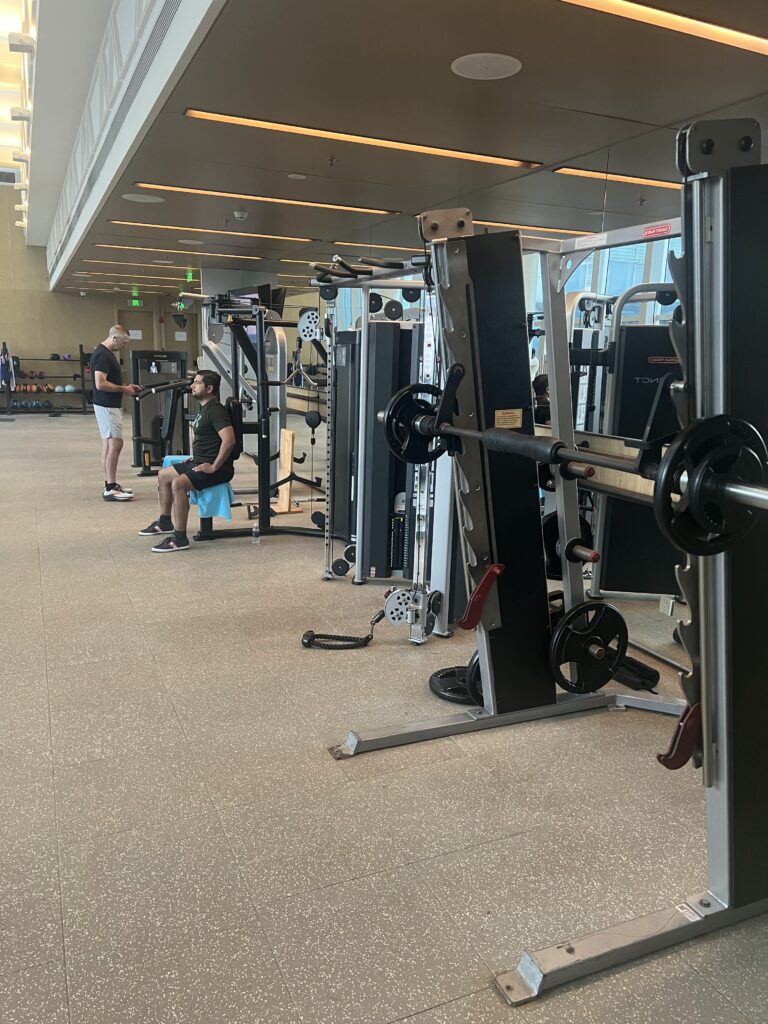 ジムは、ランニングマシーンだけではなく、マシンも少しありました。スミスマシン?もどきもあり、ダンベルもあります。ダンベルは気持ち重量が足りなく少なめでしたが、ホテル宿泊者で限界まで追い込む人は極めて少ないかと思いますので、そこは致し方ないですね。
