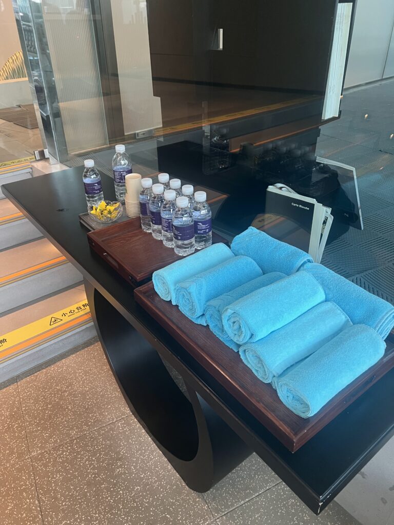 タオルとペットボトルは用意されていて自由に取ることができます。