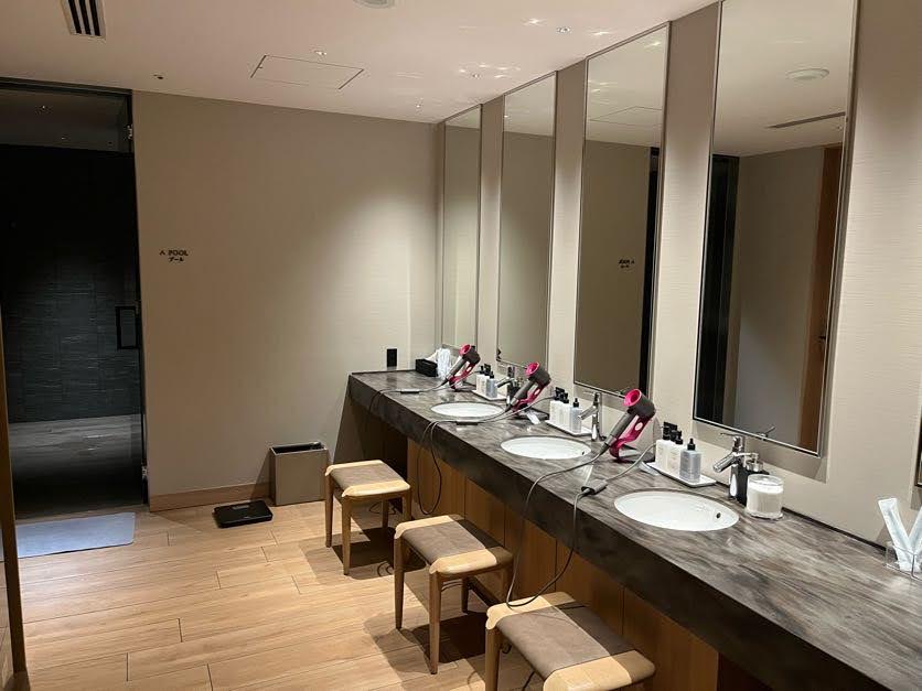 更衣室はダイソンのドライヤーに加えて簡単なスキンケアも完備しています。
