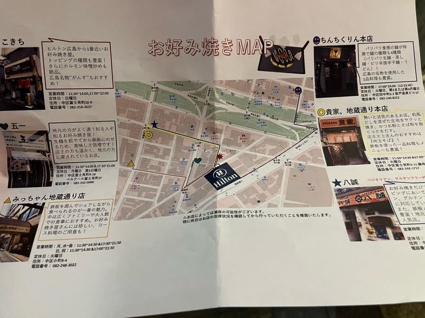 又、チェックインの際に希望すればスタッフの方が作成した周辺のおすすめお好み焼き屋マップがいただけます。