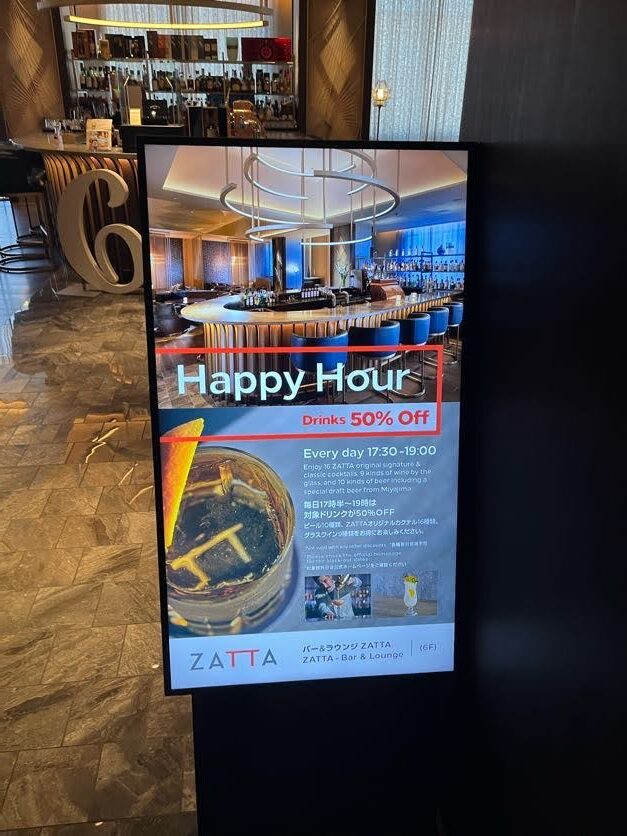 バーではハッピーアワーの案内もありホテルステイ目的で訪問しても楽しめそうでした。